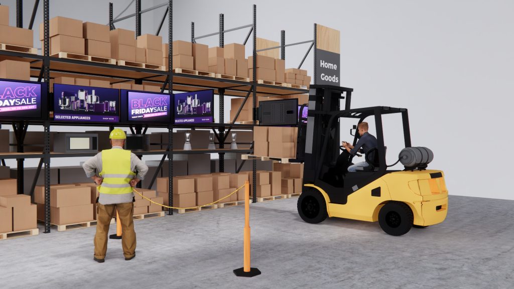 Power Ring’s innovative design not only provides forklift accessibility, but it also allows for inventory to be stored behind the signage