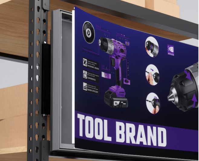 Effortlessly update printed seasonal graphics and elevate the consumer’s shopping experience. Power Ring empowers you to turn your industrial racking into a dynamic marketing tool, boosting sales, enhancing the shopping experience, and minimizing store liability.